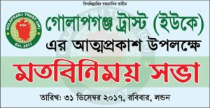 ”তিনি আরো বলেন, “নতুন এই সংগঠন বিলাতবাসী গোলাপগঞ্জের সব প্রজন্মকে নিয়ে ‘গোলাপগঞ্জ ফেস্টিভ্যাল’-এর আয়োজন করবে। এ ছাড়া বিলাতে গোলাপগঞ্জবাসীর মধ্যে যোগসূত্র স্থাপনের জন্য গুণীজন সম্মাননা, মেধাবী ছাত্র-ছাত্রীদের উৎসবের মাধ্যমে পরিচয় করিয়ে দেয়ার পাশাপাশি তাদের পরিচিতি তুলে ধরে ম্যাগাজিন প্রকাশ করা হবে।