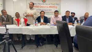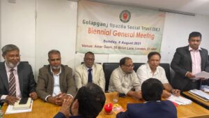 গত ৮ আগষ্ট রবিবার দুপুর ১২ ঘটিকার সময় পূর্ব লন্ডনের আমার গাঁও রেস্টুরেন্টে গোলাপগঞ্জ উপজেলা সোশ্যাল ট্রাস্ট ইউকের দ্বি-বার্ষিক সাধারণ সভা এবং নির্বাচন অনুষ্ঠিত হয়। সভায় সভাপতিত্ব করেন ট্রাস্টের চেয়ারম্যান মোহাম্মদ আব্দুল বাছিত। ট্রাস্টের জেনারেল সেক্রেটারি আনোয়ার শাহজাহানের উপস্থাপনায় সভার শুরুতে পবিত্র কোরআন তেলাওয়াত করেন মুহিবুল হক। পরে চেয়ারম্যান মোহাম্মদ আব্দুল বাছিত শুভেচ্ছা বক্তব্য রাখেন। এরপর সাধারণ সম্পাদক আনোয়ার শাহজাহান দ্বি-বার্ষিক রিপোর্ট এবং ট্রেজারার বদরুল আলম বাবুল আয়-ব্যয়ের রিপোর্ট পরিবেশন করেন।