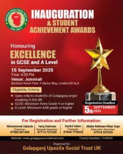 আগামী ১৫ সেপ্টেম্বর গোলাপগঞ্জ উপজেলা সোশ্যাল ট্রাস্ট ইউকের নবনির্বাচিত কমিটির অভিষেক ও কৃতী শিক্ষার্থী সংবর্ধনা